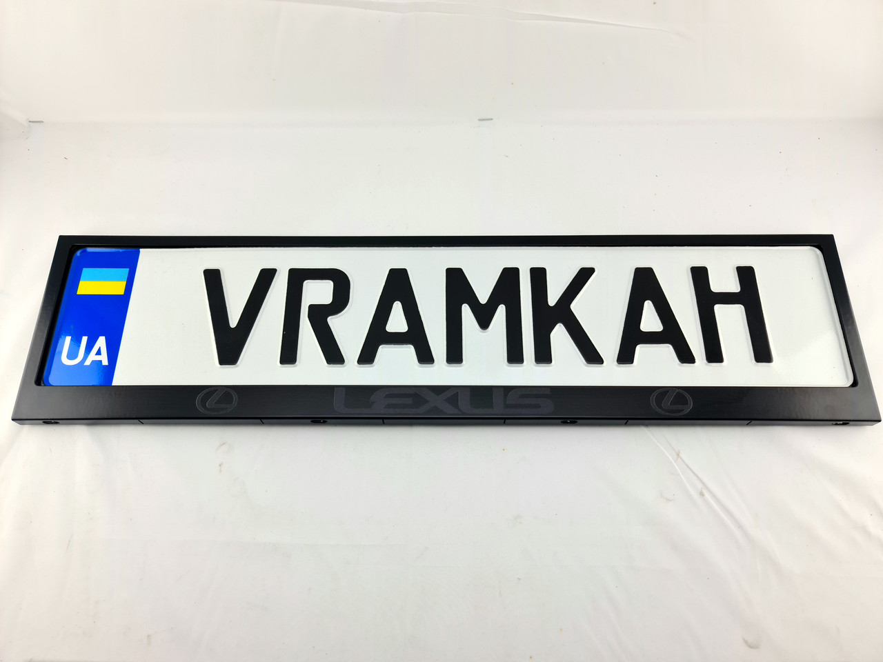 Білий напис Lexus і логотипи наноситься на рамку ультрафіолетовою печаткою, стійкою до природних впливів. Напис Lexus і логотипи не змивається і не стирається. Метал не прорізається, тому напис зроблений фірмовим шрифтом. Колір напису може бути будь-яким.