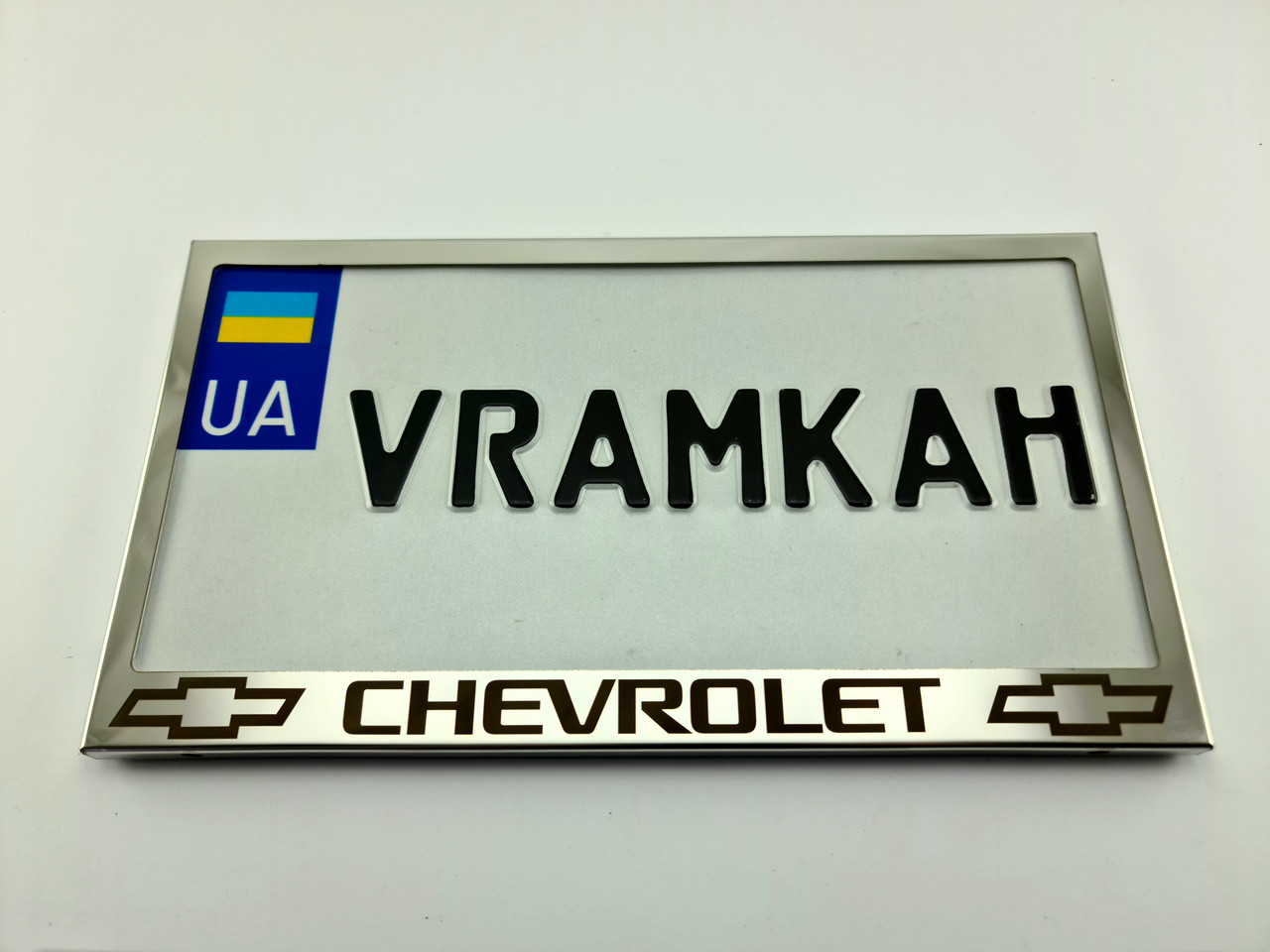 Чорна напис Chevrolet та логотипи наноситься на рамку лазерним гравіюванням, стійкою до природних впливів. Напис Chevrolet логотипи і не змивається і не стирається. Метал не прорізається, тому напис зроблений фірмовим шрифтом.